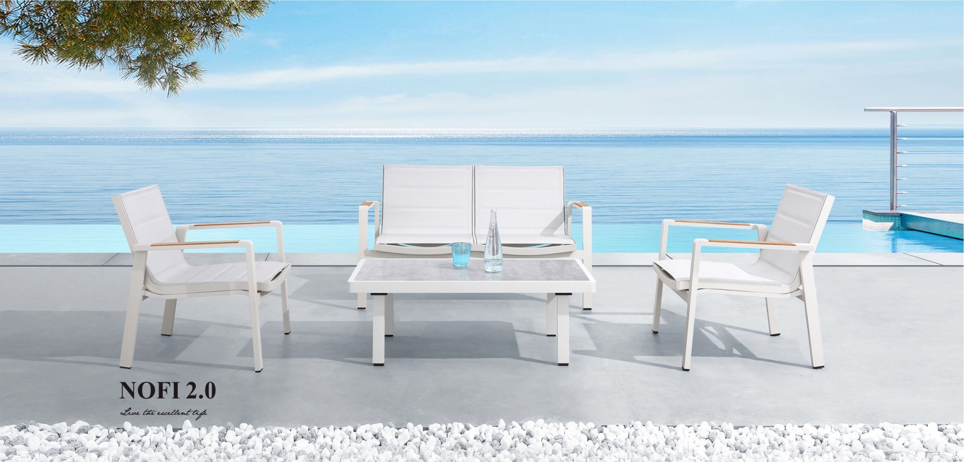 Nofi 2.0 collection carries on the design concept of Nofi series and it is a good application of textilene material as the main support of both seat and back, which is easy to maintain and clean.With padding in the middle, it offers no less comfort than cushions and makes people less concerned specially during rainy season.