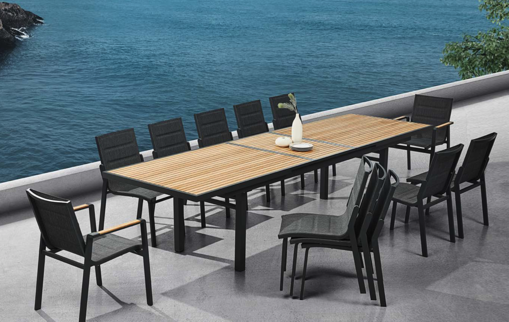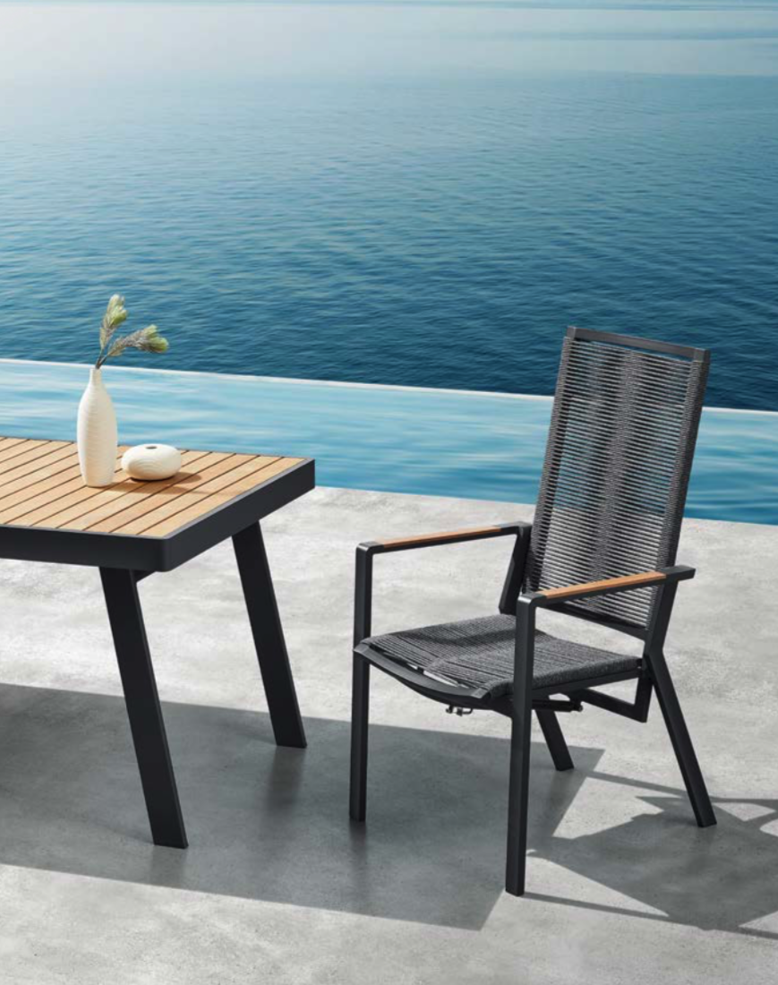 NOFI collection is composed by outdoor conversation sofa set, sectional sofa set, outdoor dining set, patio bar set, chaise lounger and swing. It is one of the collections that have a complete family to meet all kinds of living demands. With wooden elements to be installed on the armrests and table tops and with soft and airy cushion designs, Nofi shows simplicity but never loses its coziness. With DIY concept, consumer can easily do the assembling under instructions. With environment friendly and recycle process, it is one of the best sellers for online shopping.