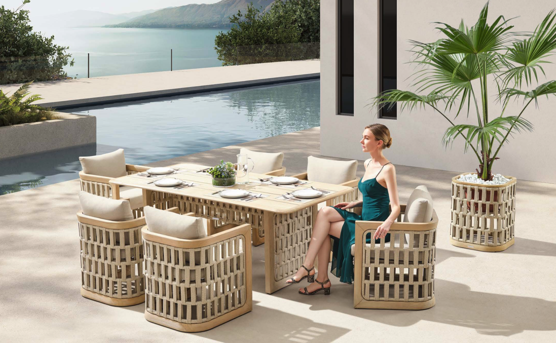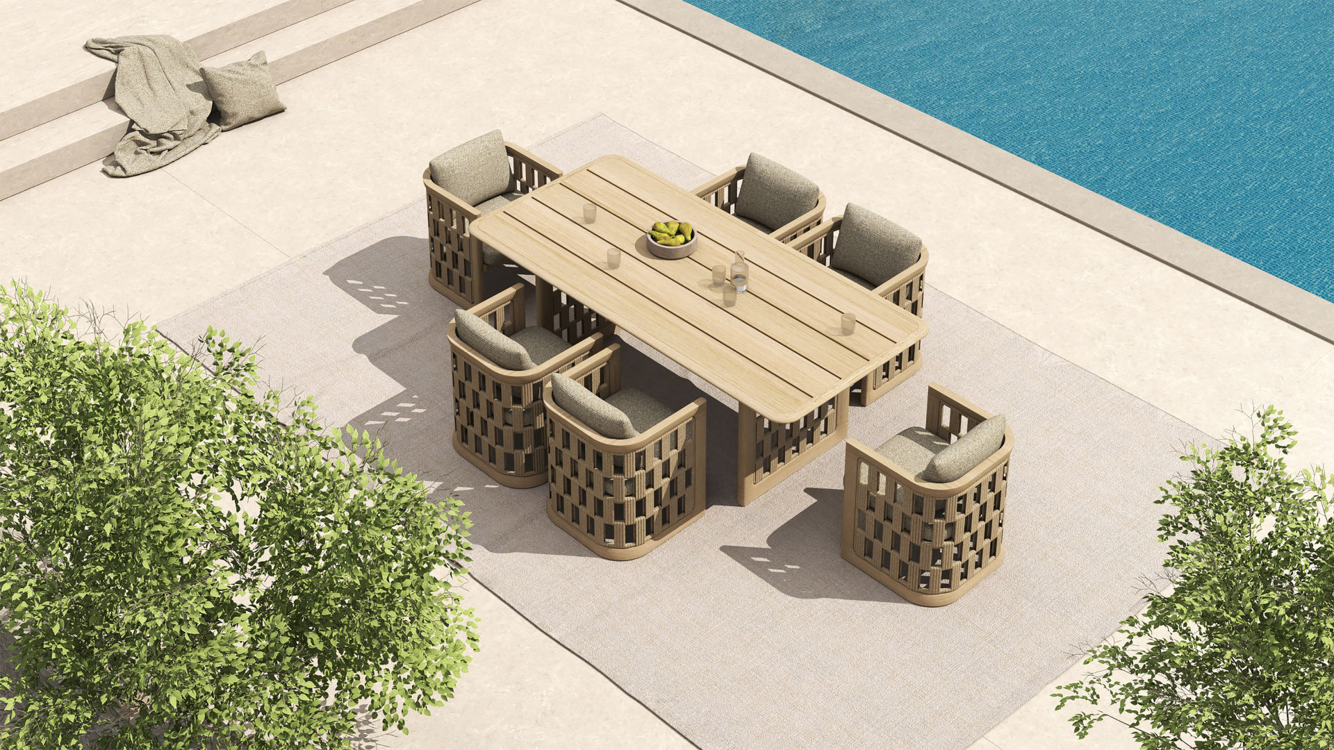 the Moorish style of Andalusian architecture and it is characterised by its severe and essential lines. The empty spaces, created by the particular making of the yarn, bring to mind the arches of the Palace of Carlos V in Granada. A touch of Spain in your house.